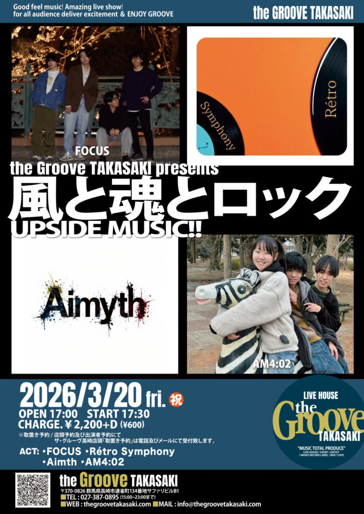 LIVE “風と魂とロック” UPSIDE MUSIC !! FOCUS / Rétro Symphony/ Aimth / AM4:02 Tweet Share Hatena Pocket RSS feedly Pin it LIVE Double Side Cutter / sweetest vengeance …前の記事 “JUNK ROCK HOUR !” Rock Junk…次の記事