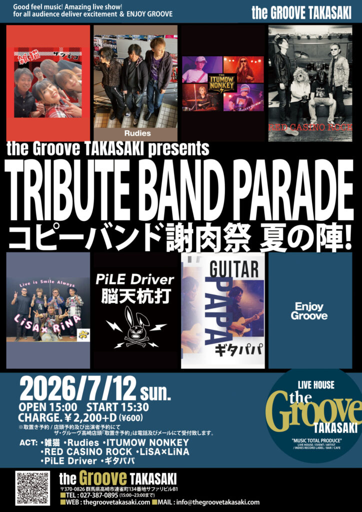 LIVE TRIBUTE BAND PARADE コピーバンド謝肉祭 夏の陣! 雑猫 / Rudies /ITUMOW NONKEY / RED CASINO ROCK / LiSA×LiNA / PiLE Driver / ギタパパ Tweet Share Hatena Pocket RSS feedly Pin it LIVE MASAYUKI DEGUCHI LIVE 2026 〜New Album Re…前の記事 LOVERSOUL present’s Moonlight Zomb…次の記事