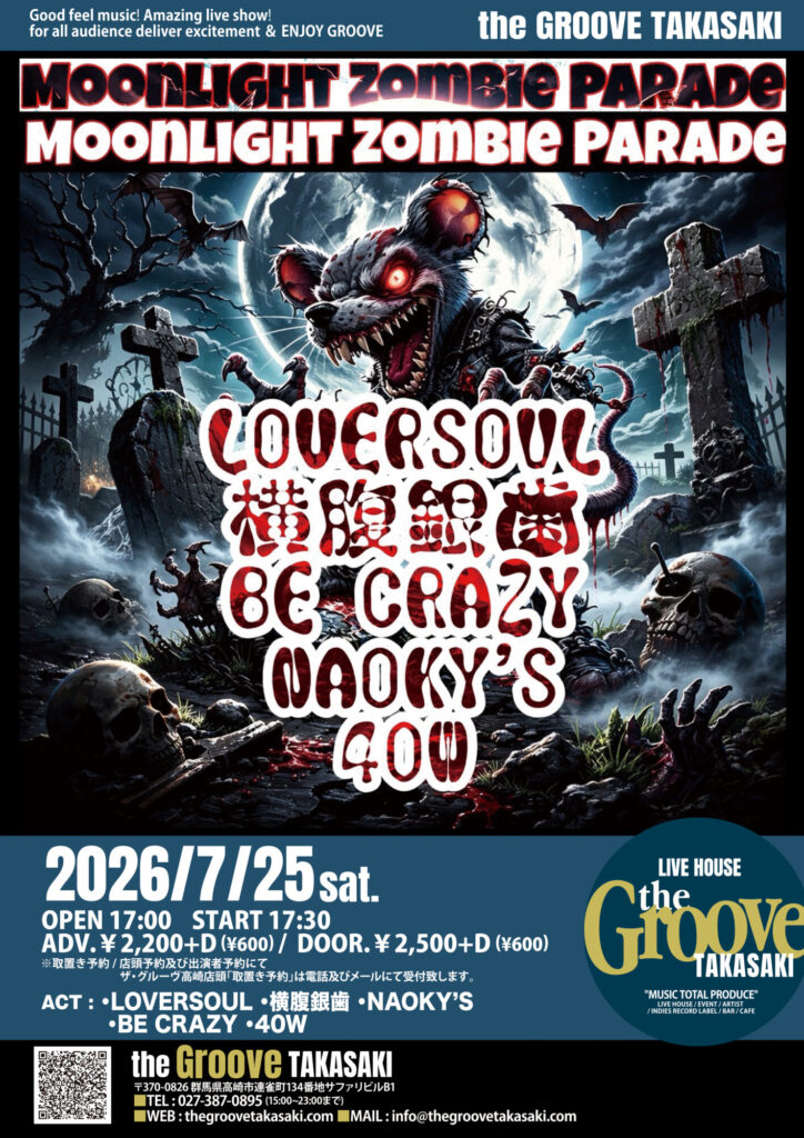 LIVE LOVERSOUL present’s Moonlight Zombie Parade LOVERSOUL/ 横腹銀歯 / NAOKY’S / BE CRAZY / 40W Tweet Share Hatena Pocket RSS feedly Pin it LIVE MASAYUKI DEGUCHI LIVE 2026 〜New Album Re…前の記事