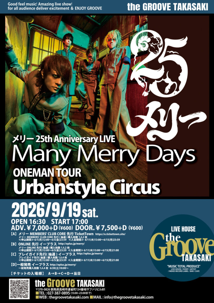 LIVE メリー 25th Anniversary LIVE -Many Merry Days- ONEMAN TOUR 「Urbanstyle Circus」 Tweet Share Hatena Pocket RSS feedly Pin it LIVE ストレンジパイ単独GIG 『All Pied Up』 鈴木光生誕60周年。結成約…前の記事